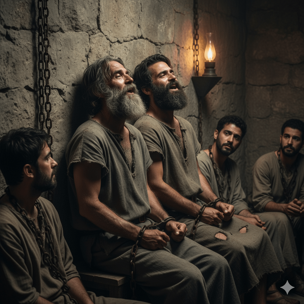 “About midnight Paul and Silas were praying and singing hymns to God, and the prisoners were listening to them, and suddenly there was a great earthquake, so that the foundations of the prison were shaken. And immediately all the doors were opened, and everyone’s bonds were unfastened.”